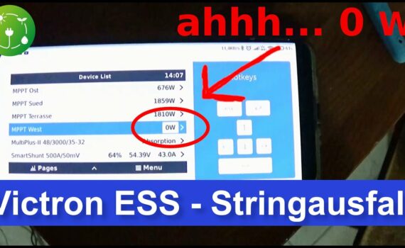 00:00 PV Stringausfall im Victron ESS 00:39 Fehleranalyse 06:12 Dem Schuldigen auf der Spur 08:09 Defekte MC4 Steckverbindung 12:04 3S2P Stringverkabelung 12:34 Finale der Fehlerbehebung --------------------------Ich freue mich über Dein Abo!---------------------------------- Disclaimer: Ich gebe hier ausdrücklich nur meine eigenen Erfahrungen wieder und übernehme keine Haftung aus Schäden die durch die Anwendung des hier gezeigten entstehen! Jeder ist für sein Tun selbst verantwortlich. Im Zweifel fragen Sie bitte ihren Arzt oder Elektromeisterbetrieb! -------------------------------------Gutscheincodes-------------------------------------- "Ökologisiert" bei: Panda-Solar https://panda-solar.de 1) Beste Preise bei Victron Energy und anderen Herstellern! ----------------------------------------Meine PV----------------------------------------- Solarmodule: 6 * 330W - 1980Wp Ostlage 6 * 330W - 1980Wp Westlage 3 * 375W - 1125Wp Südlage 6 * 380W - 2280Wp Terrassendach Wechselrichter: 3 * Victron MultiPlus II 48/3000/35-32 https://www.panda-solar.de/Victron-Multiplus-II-48-3000-35-32.html 1) https://amzn.to/3JJJS0I 2) Laderegler: 4 * Victron Energy MPPT 150/35 https://www.panda-solar.de/Victron-SmartSolar-150-35-Laderegler.html 1) https://amzn.to/3HEib7K 2) Controller: VenusOS auf RaspberryPi 3 https://amzn.to/3pV3XZT 2) Speicher: DIY - LiFePo4 16S 48V (51,2V) 240Ah - 12,3 kW/h BMS: Daly 250A https://de.banggood.com/custlink/vvDYnVPWUs 2) * Sämtliche mit 1) gekennzeichneten Links stellen Werbung dar. ** Sämtliche mit 2) gekennzeichneten Links hängen mit Partnerprogrammen zusammen. Sie dienen dem potentiellen Käufer als Orientierung und verweisen explizit auf bestimmte Produkte. Sofern diese Links genutzt werden, kann im Falle einer Kaufentscheidung eine Provision an mich ausgeschüttet werden. Hier noch ein paar Worte für den Suchalgorithmus: Photovoltaik, Energiewende, PV, Wechselrichter, Sonnenstrom, Hausdach, Garagendach, Unabhängigkeit, Sonnenenergie, Sonne, Kraftwerk, Strom, Sektorenkopplung, Balkonkraftwerk, Speicher, LiFePo4, Selbstbau, Kapazitätstest, AliExpress, DIY-Speicher, Klimatechnik, Wärmekopplung, Wärmepumpe
