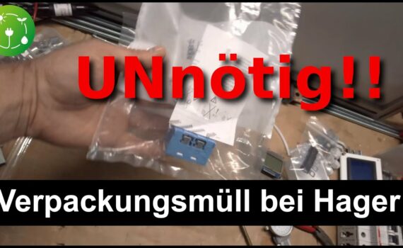 Ich verwende gerne die Produkte von Hager. Qualitativ sehr gut, passgenau, funktional, praktisch! Aber als ich jetzt mal wieder neue Klemmen bestellte, kamen diese in unnötig großen und schweren Kunststoffverpackungen daher, EINZELN verpackt! In Zeiten wo wir DRINGENDS auf die Verwendung der uns zur Verfügung stehenden Resourcen achten sollten/müssen, für mich ein UNDING! Bitte, liebe Firma Hager Vertriebsgesellschaft mbH & Co. KG, stellt doch diesen Unsinn mal ab, oder denkt darüber nach, wie man es besser machen könnte, gerne unterstütze ich euch dabei, auch mit Kontakten in entsprechende Branchenverbände der Verpackungsindustrie! --------------------------Ich freue mich über Dein Abo!---------------------------------- Disclaimer: Ich gebe hier ausdrücklich nur meine eigenen Erfahrungen wieder und übernehme keine Haftung aus Schäden die durch die Anwendung des hier gezeigten entstehen! Jeder ist für sein Tun selbst verantwortlich. Im Zweifel fragen Sie bitte ihren Arzt oder Elektromeisterbetrieb! -------------------------------------Gutscheincodes-------------------------------------- "Ökologisiert" bei: Panda-Solar https://panda-solar.de 1) Beste Preise bei Victron Energy und anderen Herstellern! ----------------------------------------Meine PV----------------------------------------- Wechselrichter: 3 * Victron MultiPlus II 48/3000/35-32 https://www.panda-solar.de/Victron-Multiplus-II-48-3000-35-32.html 1) https://amzn.to/3JJJS0I 2) Laderegler: 4 * Victron Energy MPPT 150/35 https://www.panda-solar.de/Victron-SmartSolar-150-35-Laderegler.html 1) https://amzn.to/3HEib7K 2) Controller: VenusOS auf RaspberryPi 3 https://amzn.to/3pV3XZT 2) Speicher: DIY - LiFePo4 16S 48V (51,2V) 240Ah - 12,3 kW/h BMS: Daly 250A https://de.banggood.com/custlink/vvDYnVPWUs 2) * Sämtliche mit 1) gekennzeichneten Links stellen Werbung dar. ** Sämtliche mit 2) gekennzeichneten Links hängen mit Partnerprogrammen zusammen. Sie dienen dem potentiellen Käufer als Orientierung und verweisen explizit auf bestimmte Produkte. Sofern diese Links genutzt werden, kann im Falle einer Kaufentscheidung eine Provision an mich ausgeschüttet werden. Hier noch ein paar Worte für den Suchalgorithmus: Photovoltaik, Energiewende, PV, Wechselrichter, Sonnenstrom, Hausdach, Garagendach, Unabhängigkeit, Sonnenenergie, Sonne, Kraftwerk, Strom, Sektorenkopplung, Balkonkraftwerk, Speicher, LiFePo4, Selbstbau, Kapazitätstest, AliExpress, DIY-Speicher, Klimatechnik, Wärmekopplung, Wärmepumpe