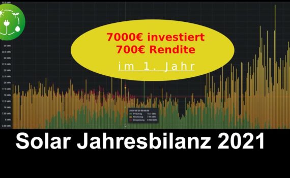 Ein frohes, neues und vor allem sonniges Jahr 2022 wünsche ich euch. Hier nun mal meine Auswertung zu 2021 Was hat es gebracht? Was hätte es bringen können? --------------------------Ich freue mich über Dein Abo!---------------------------------- -------------------------------------Gutscheincodes-------------------------------------- "Ökologisiert" bei: Panda-Solar https://panda-solar.de 1) Beste Preise bei Victron Energy und anderen Herstellern! ----------------------------------------Meine PV----------------------------------------- Solarmodule: 6 * 330W - 1980Wp Ostlage 6 * 330W - 1980Wp Westlage 3 * 375W - 1125Wp Südlage Wechselrichter: 3 * Victron MultiPlu II 48/3000/35-32 https://www.panda-solar.de/Victron-Multiplus-II-48-3000-35-32.html 1) https://amzn.to/3JJJS0I 2) Laderegler: 3 * Victron Energy MPPT 150/35 https://www.panda-solar.de/Victron-SmartSolar-150-35-Laderegler.html 1) https://amzn.to/3HEib7K 2) Controller: VenusOS auf RaspberryPi 3 https://amzn.to/3pV3XZT 2) Speicher: LiFePo4 16S 48V (51,2V) 78Ah - 4kW/h BMS: Daly 250A https://de.banggood.com/custlink/vvDYnVPWUs 2) * Sämtliche mit 1) gekennzeichneten Links stellen Werbung dar. ** Sämtliche mit 2) gekennzeichneten Links hängen mit Partnerprogrammen zusammen. Sie dienen dem potentiellen Käufer als Orientierung und verweisen explizit auf bestimmte Produkte. Sofern diese Links genutzt werden, kann im Falle einer Kaufentscheidung eine Provision an mich ausgeschüttet werden.